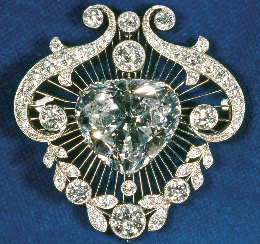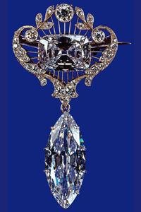 The Cullinan V har en trekantig päronform och väger 18,80 karat och är monterad i en brosch för Queen Mary.