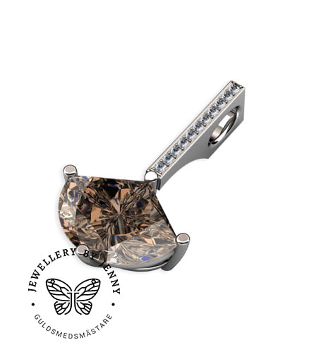 Hängsmycke i 18 k vitguld med en briljantbeströd stav samt en vacker äkta zirkon med en elegant rökig färg som framhävs av de vita diamanterna.