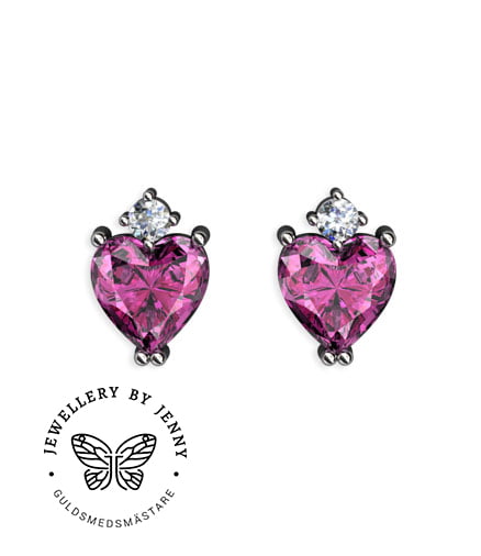 Örhängen med rosa hjärtslipade safirer samt briljantslipade diamanter.