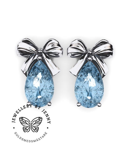 Romantiska örhängen med droppslipade ädelstenar. Bilderna visar Diamanter, Akvamariner (ljusblå) samt Morganiter (rosa).