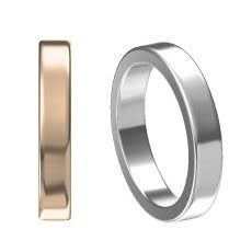 De är ett par vitguldsringar med en rand i röttguld.